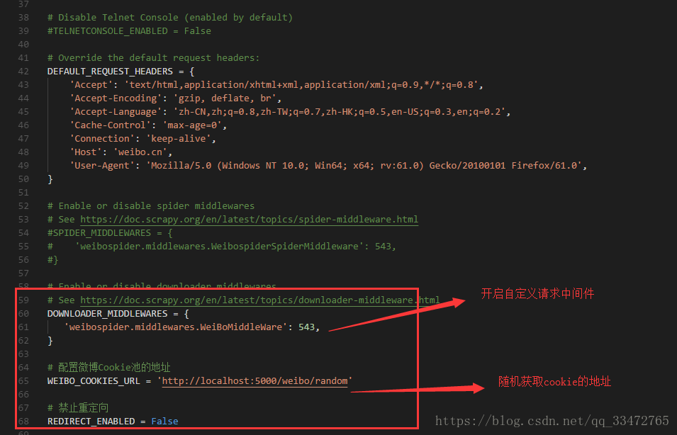到此这篇关于python爬虫scrapy框架cookie池(微博cookie池)的使用的文章就介绍到这了,更多相关scrapy cookie池内容请搜索以前的文章或继续浏览下面的相关文章希望大家以后多多支持!