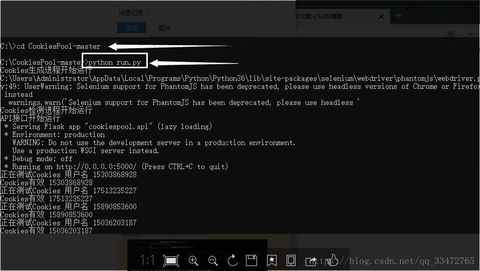 随机获取cookies: http://localhost:5000/weibo/random(注意:cookie使用时是需要后期处理的!!)