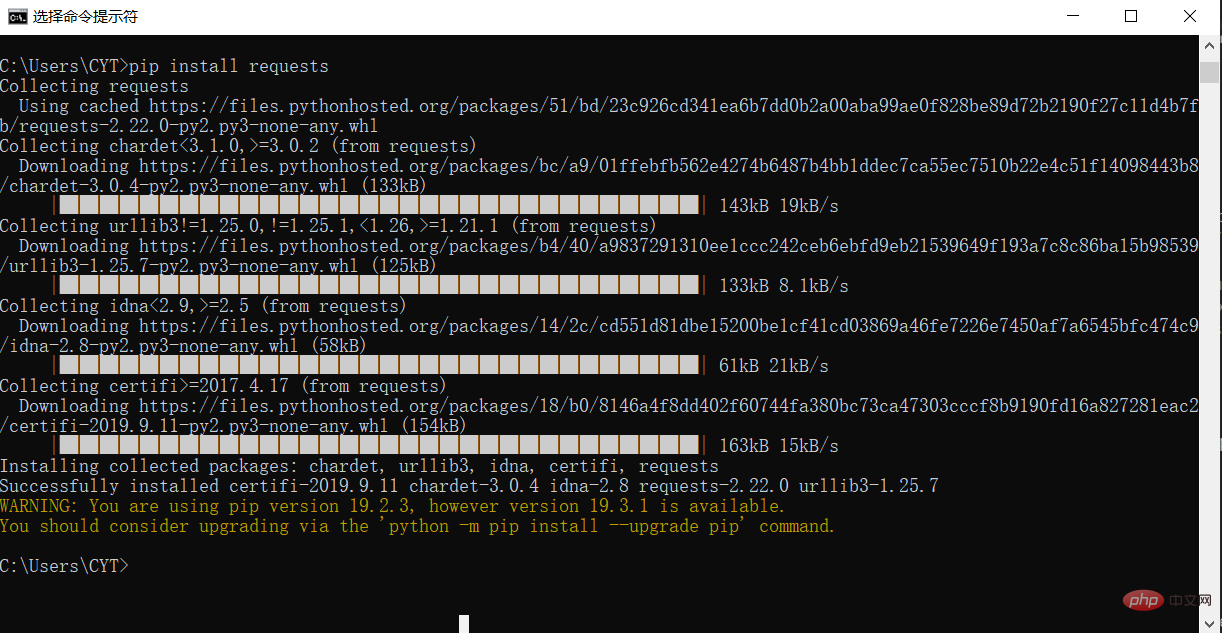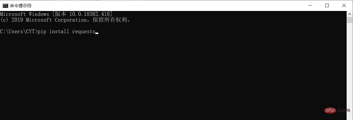 在Windows系统中,打开cmd(命令提示符)界面,在该界面输入pip install requests,按回车键进行安装。(注意连接网络)如下图