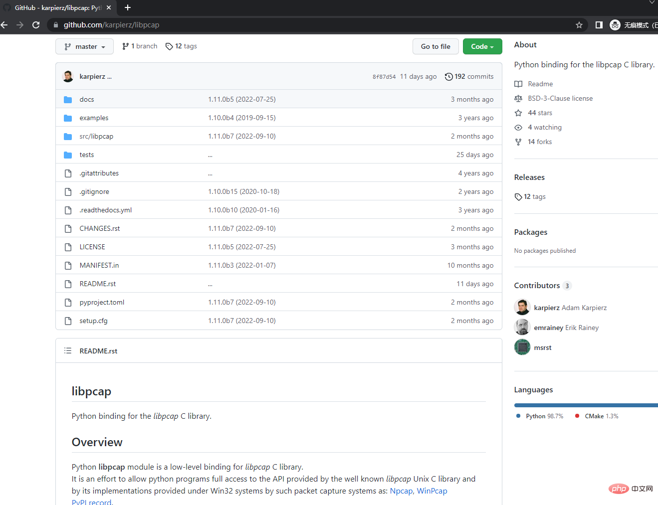 github 地址:https://github.com/karpierz/libpcap