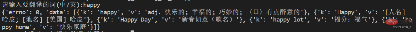 print("词:"+ch['data'][i]['k']+" "+"单词意思:"+ch['data'][i]['v'])最后