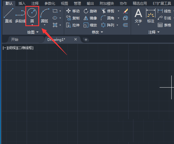 2、绘制好线段之后,我们再在绘图区里找到圆形选项,如图所示: