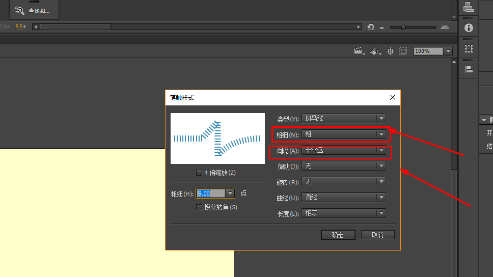 4、设置好粗细和间隔
