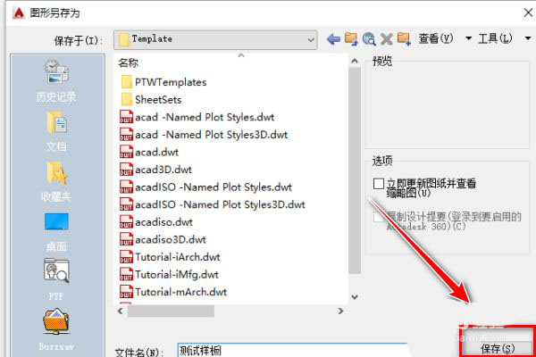 最后点击autocad样板,保存文件即可。