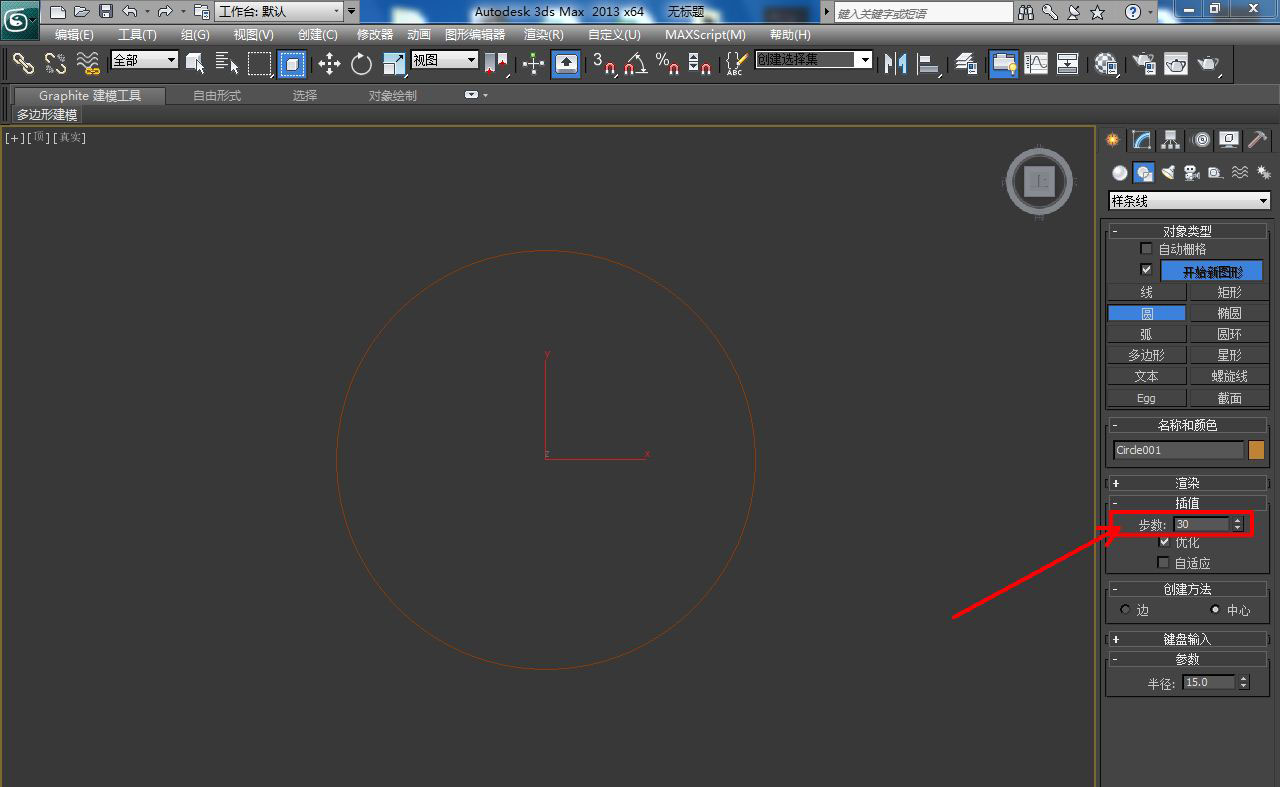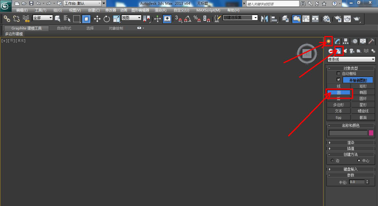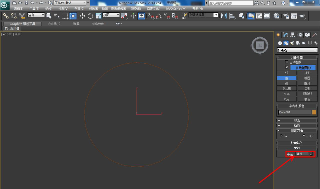 点击【创建】-【图形】-【圆】,按图示绘制一个圆形并设置好圆形的各个参数;
