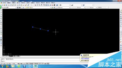 1、安装好cad2007之后,界面如图所示,以一条直线来反映所要设置的最基本问题。如图所示,十字光标太小,夹点太小。