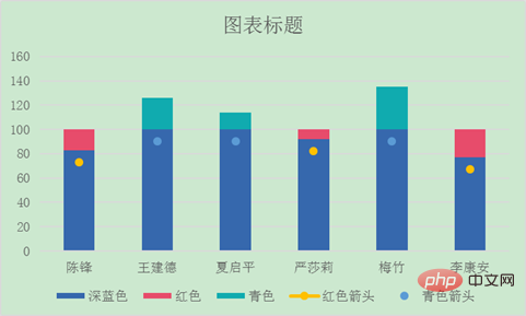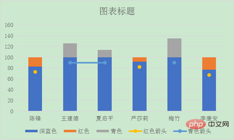 青色=IF(B4>=C4,B4-C4,NA()) 表示如果销售额大于等于指标,返回差额否则返回空。