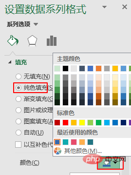 现在把这个数据系列修改成自己想要的颜色。双击数据系列,在右侧“设置数据系列格式”窗口选择系列选项下的填充—纯色填充,颜色选择为对应的颜色。