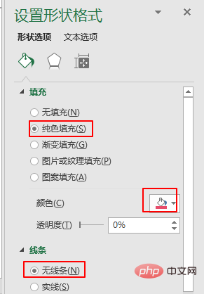 双击箭头,在右侧“设置形状格式”窗口,修改箭头颜色和红色系列颜色相同,线条为“无线条”。