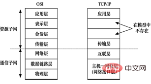 OSI参考模型与TCP/IP参考模型层次间的对应关系: