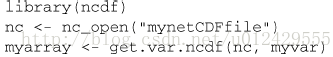 在本例中,对于包含在netcdf文件mynetcdffile中的变量myvar,其所有数据都被读取并保存到了一个名为myarray的r数组中。