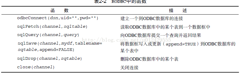 rodbc包中的主要函数列于表2-2中。