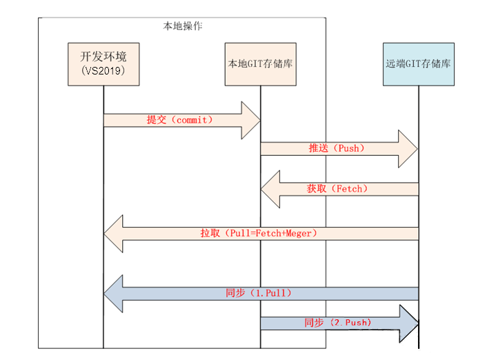 在使用前先来了解一下git的工作流程,是很有必要的一件事,下面是git的工作流程和如何使用visual studio 中的git进行操作的图解: