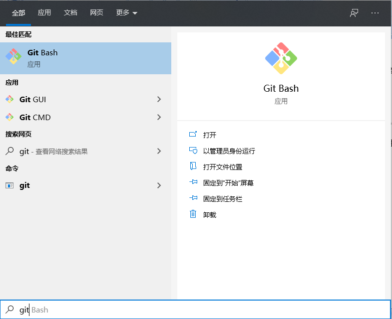8.在操作系统windows 10的开始菜单中直接输入“git”,会出现以下应用程序选项。如下图。