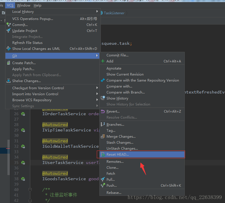 其实是开发中,我不小心把不该提交的代码提交到了本地,例如tasklistener这个类,改了之后,不能提交,一不小心被我commit到了本地(还没有推送到远程)。