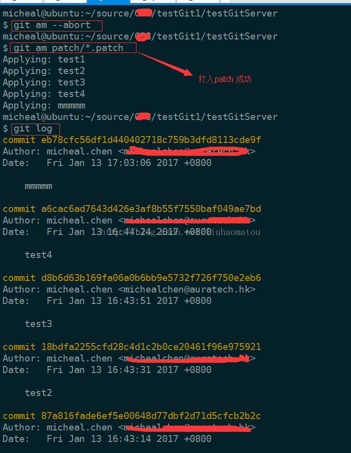 由于这些patch显然是用git format-patch来生成的,所以用git的工具应该就可以很好的做好。git am 就是作这件事情。