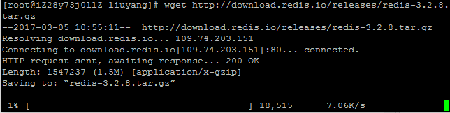 1.进入到centos系统,输入wget ,下载好目前最新版的Redis,下载过程如下图。