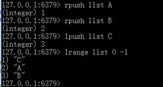 lrange key 0 -1:0代表第一个元素,-1代表倒数第一个元素。