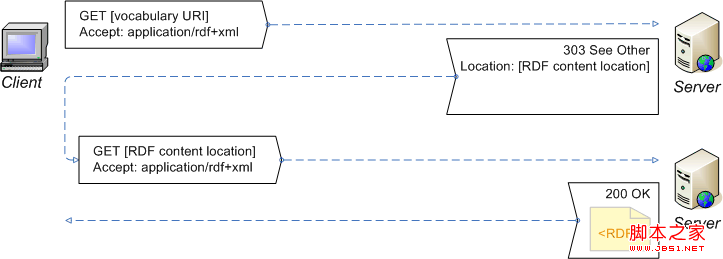 也就是说,对于一个http uri可以返回两种表达形式:文档和数据。这样就建立了两种不同的网络,一个利于人类阅读的文档网,另一种是利于机器阅读的数据网。