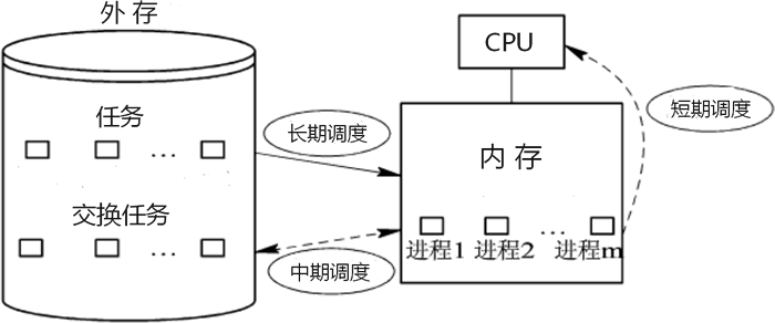 某些操作系统(例如多道批处理系统)中,用户提交的任务量可能远远超过系统可以同时执行的最大进程数,为了控制内存中的进程数量,操作系统会将部分任务存储在外部存储器(通常是硬盘)中,同时建立一种调度机制,以便适当时候还能将外存中的任务移到内存。