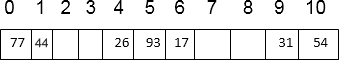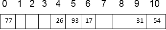 hashArr=[77,44,-1,-1,26,93,17,-1,-1,31,54]