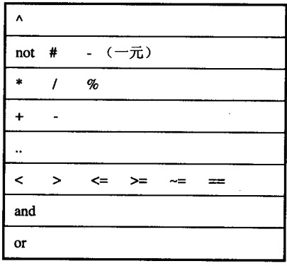 常规关系操作符有:<小于、>大与、<=小于等于、>=大于等于、==相等、~=不等。==和~=可用于任意两个值,若两个值具有不同类型则不相等,有相同类型则作正常比较(nil只与其自身相等)。对于对象则比较它们的引用。