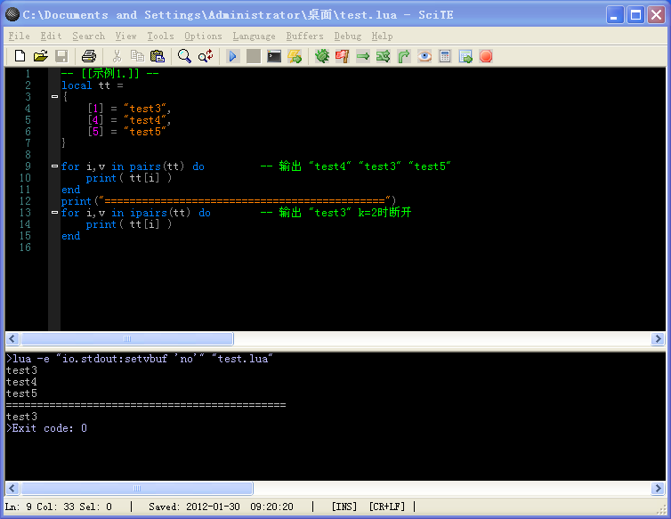 for i,v in ipairs(tt) do -- 输出 "test3" k=2时断开