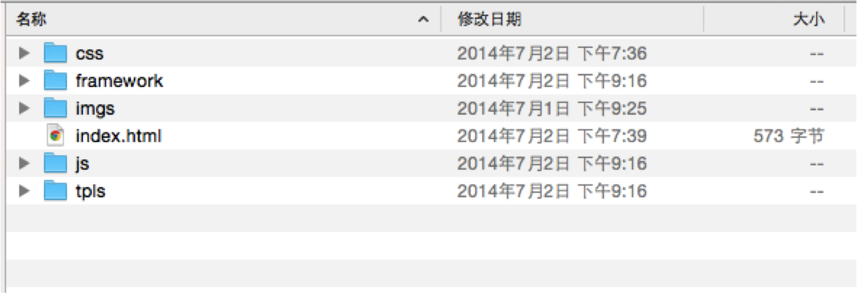 6.tpls:全称是templates,意思是模版。里面放的是部分html代码。与angualrjs的directive命令中的templateurl属性合用。
