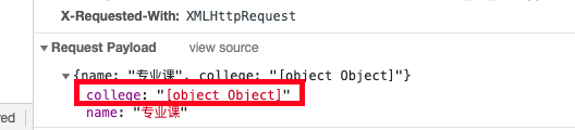 在控制台打印,发现传过去的 college 就是 [object object]