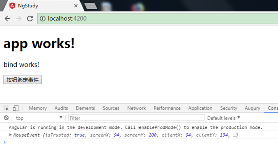 <button (click)="onclickbutton($event)">按钮绑定事件</button>