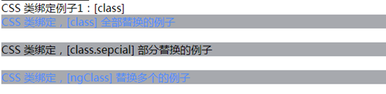 <!-- 增加代码 --> <div [class.a]="isspcial">css 类绑定,[class.sepcial] 部分替换的例子</div>