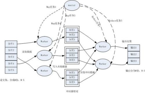 所有执行完毕后,MapReduce输出放在了R个分区的输出文件中(分别对应一个Reduce作业)。用户通常并不需要合并这R个文件,而是将其作为输入交给另一个MapReduce程序处理。整个过程中,输入数据是来自底层分布式文件系统(GFS)的,中间数据是放在本地文件系统的,最终输出数据是写入底层分布式文件系统(GFS)的。而且我们要注意Map/Reduce作业和map/reduce函数的区别:Map作业处理一个输入数据的分片,可能需要调用多次map函数来处理每个输入键值对;Reduce作业处理一个分区的中间键值对,期间要对每个不同的键调用一次reduce函数,Reduce作业最终也对应一个输出文件。