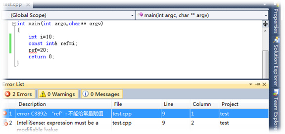 而就不存在所谓的”常量引用常量”,因为跟上面讲的一样引用变量就是引用常量。C++不区分变量的const引用和const变量的引用。程序决不能给引用本身重新赋值,使他指向另一个变量,因此引用总是const的。如果对引用应用关键字const,起作用就是使其目标称为const变量。即没有:Const double const& a=1;只有const double& a=1;