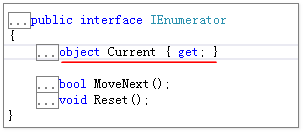 并没有想象的那么复杂。其中IEnumerable只有一个返回IEnumerator的GetEnumerator方法。而IEnumerator中有两个方法加一个属性。