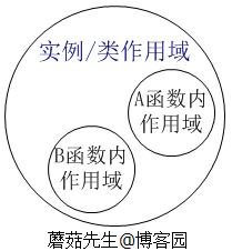 C#变量作用域一共有三种,即:类变量,实例变量,函数内变量。子作用域访问父作用域的变量(即函数内访问实例/类变量)在我们看来理所当然的,也符合我们一直的编程习惯。