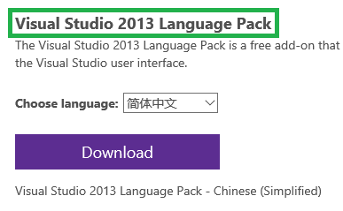 2、安装完 Visual Studio 默认是英文,如果对英文不感冒的童鞋,可以下载中文语言包。