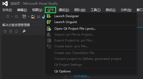 安装完成 Visual Studio Add-in 之后,Visual Studio 就会出现相应的 Qt 选项!