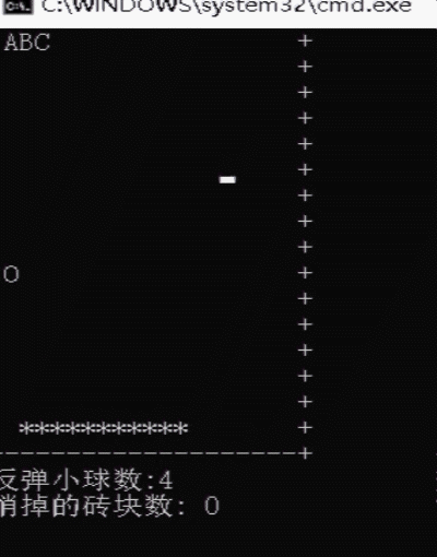 #include<stdio.h> #include<string.h> #include<conio.h> #include<windows.h> //全局变量 int high,width; //游戏画面大小 int ball_x,ball_y;//小球的坐标 int ball_vx,ball_vy;//小球的速度 void gotoxy(int x,int y)//将光标移动到(x,y)位置 { HANDLE handle = GetStdHandle(STD_OUTPUT_HANDLE); COORD pos; pos.X = x; pos.Y = y; SetConsoleCursorPosition(handle,pos); } void startup()//数据的初始化 { high = 15; width = 20; ball_x = 0; ball_y = width/2; ball_vx = 1; ball_vy = 1; } void show()//显示画面 { gotoxy(0,0);//光标移动到原点位置,以下重画清屏 int i,j; for(i=0;i<=high;i++) { for(j=0;j<=width;j++) { if( ( i == ball_x) && ( j == ball_y ) ) printf("O");//输出小球 else if( j == width) printf("+");//输出右边框 else if( i == high) printf("-");//输出下边框 else printf(" ");//输出空格 } printf("\n"); } } void updateWithoutInput()//与用户输入无关的更新 { ball_x = ball_x + ball_vx; ball_y = ball_y + ball_vy; if( (ball_x == 0 ) || (ball_x == high-1 )) ball_vx = -ball_vx; if( (ball_y == 0 ) || (ball_y == width-1 )) ball_vy = -ball_vy; Sleep(50); } void updateWithInput()//与用户输入有关的更新 { } int main(void) { startup();//数据的初始化 while(1) { show();//显示画面 updateWithoutInput();//与用户输入无关的更新 updateWithInput();//与用户输入有关的更新 } return 0; }