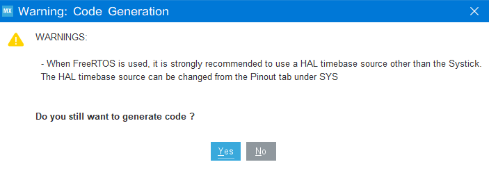 在使用stm32cubeMX配置FreeRTOS时,选择时钟源为SysTick会有提示警告:WARNINGS:-When FreeRTOS is used, it is strongly recommended to use a HAL timebase source other than the Systick.The HAL timebase source can be changed from the Pinout tab under SYS