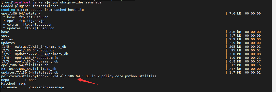 [root@localhost jenkins]# yum whatprovides semanage