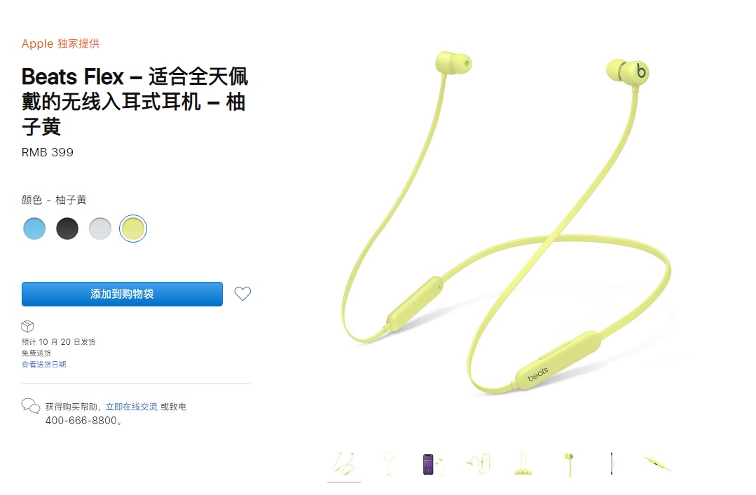 10 月 21 日开始,beats flex 将通过苹果在线商店 apple.com 独家发售 beats 经典黑红和柚子黄 (英国为 citrus yellow)配色,起售价为 ¥399 人民币。
