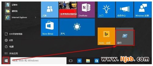 点击Win10左下角的图标,进入开始菜单,然后在下面的搜索框中,输入:运行,搜索之后,就可以快速搜索到Win10运行入口了。