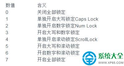 4、最后重新启动电脑,就能发现win10默认开启小键盘了,下面附上相关数值的含义,用户们也可以根据需求将其中数据改成其他数值