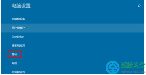 在电脑设置中我们选择“隐私”