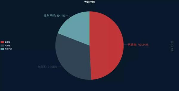 先单独把性别拎出来看一下,后面再根据城市进行分析,结果显示,抛开未设置性别的乘客不论,总体来看顺风车的用户群中,男性(占比49.39%)还是多于女性(占比31.55%)的。毕竟跨城顺风车,大过年的,女性乘客对于安全性的忧虑还有要有的。