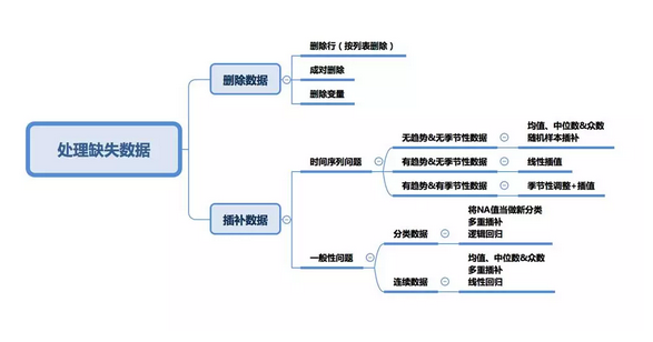 在前两种情况下可以根据其出现情况删除缺失值的数据,而在第三种情况下,删除包含缺失值的数据可能会导致模型出现偏差。因此我们需要对删除数据非常谨慎。请注意,插补数据并不一定能提供更好的结果。