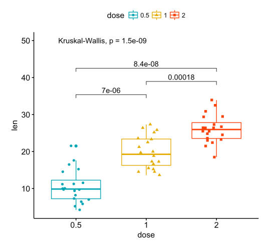 具有比较p值的箱线图(Alboukadel Kassambara)
