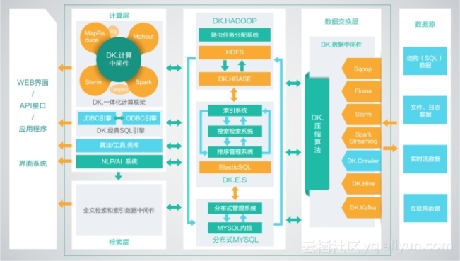 1、DKhadoop发行版:有效的集成了整个HADOOP生态系统的全部组件,并深度优化,重新编译为一个完整的更高性能的大数据通用计算平台,实现了各部件的有机协调。因此DKH相比开源的大数据平台,在计算性能上有了高达5倍(最大)的性能提升。DKhadoop将复杂的大数据集群配置简化至三种节点(主节点、管理节点、计算节点),极大的简化了集群的管理运维,增强了集群的高可用性、高可维护性、高稳定性。