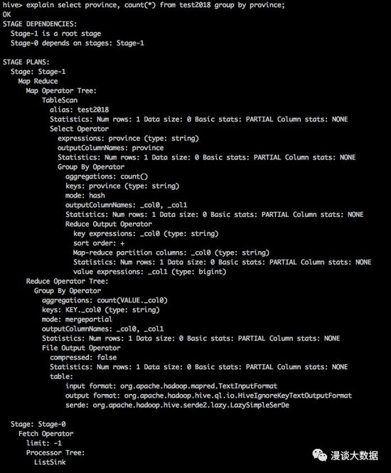 可以看到,Hive 把刚才的 SQL 语句解析成了 MapReduce 任务。这条 SQL 很简单,如果是复杂的 SQL,可能会被解析成很多个连续依赖执行的 MapReduce 任务。