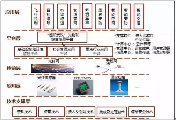 物联网产业大数据以应用层、支撑层、感知层、平台层以及传输层这五个层次构成。